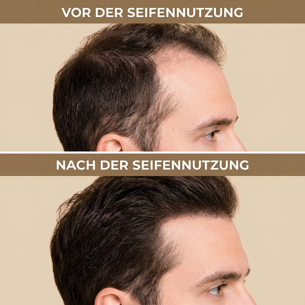 „Ich war skeptisch bei fester Haarpflege, aber diese Seife hat mich überzeugt. Spürbar mehr Dichte nach ein paar Wochen."